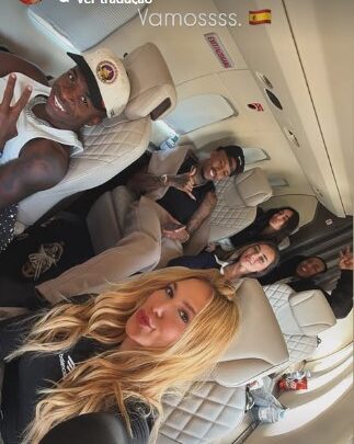 Na foto, eles estão dentro de um jatinho juntamente com Eder e Tainá, além de Duda Freire, amiga da influenciadora, e Felipe ‘Do Gordo’, amigo dos jogadores. “Vamoos” escreveu Tainá na publicação ao lado de uma bandeira da Espanha e foi feita antes do voo de retorno ao país onde vivem após curtição em Mônaco, onde Virginia e Vini foram flagrados em um momento mais íntimo.